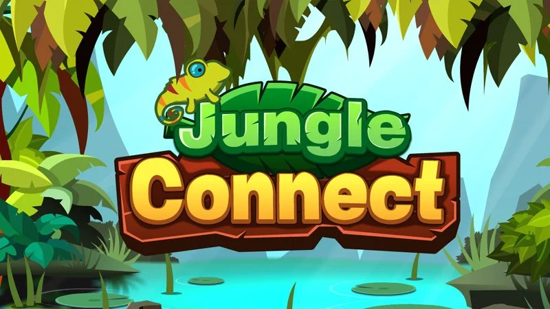 Mahjong Connect in the Jungle. Connect two of the same tiles to remove those tiles. The connecting line cannot have more than two 90 degree angles.